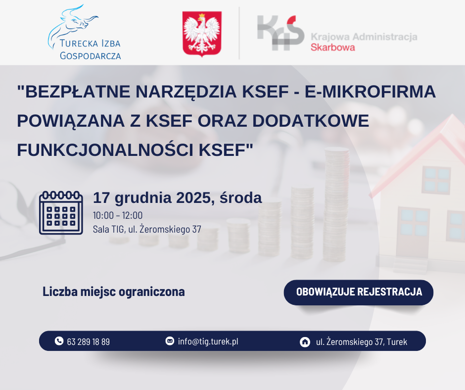 ℹ️ Spotkanie realizowane jest przy współpracy z Naczelnikiem Urzędu Skarbowego w Turku.