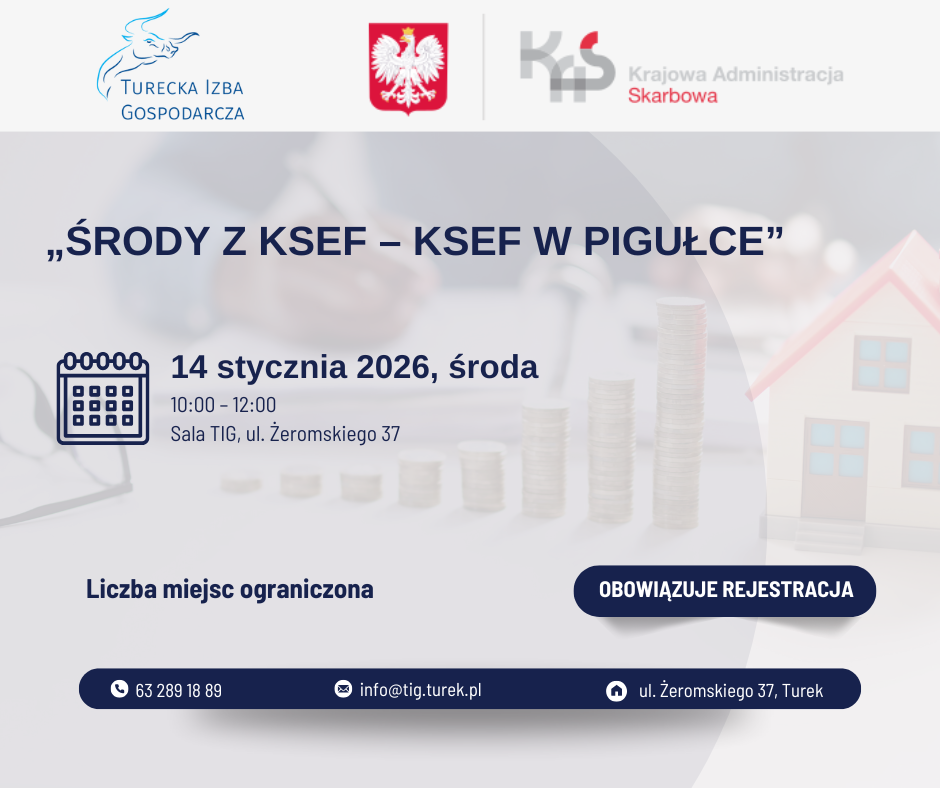 Zapraszamy do udziału w nowym cyklu bezpłatnych szkoleń poświęconych Krajowemu Systemowi e-Faktur (KSeF), organizowanych we współpracy z Naczelnikiem Urzędu Skarbowego w Turku.