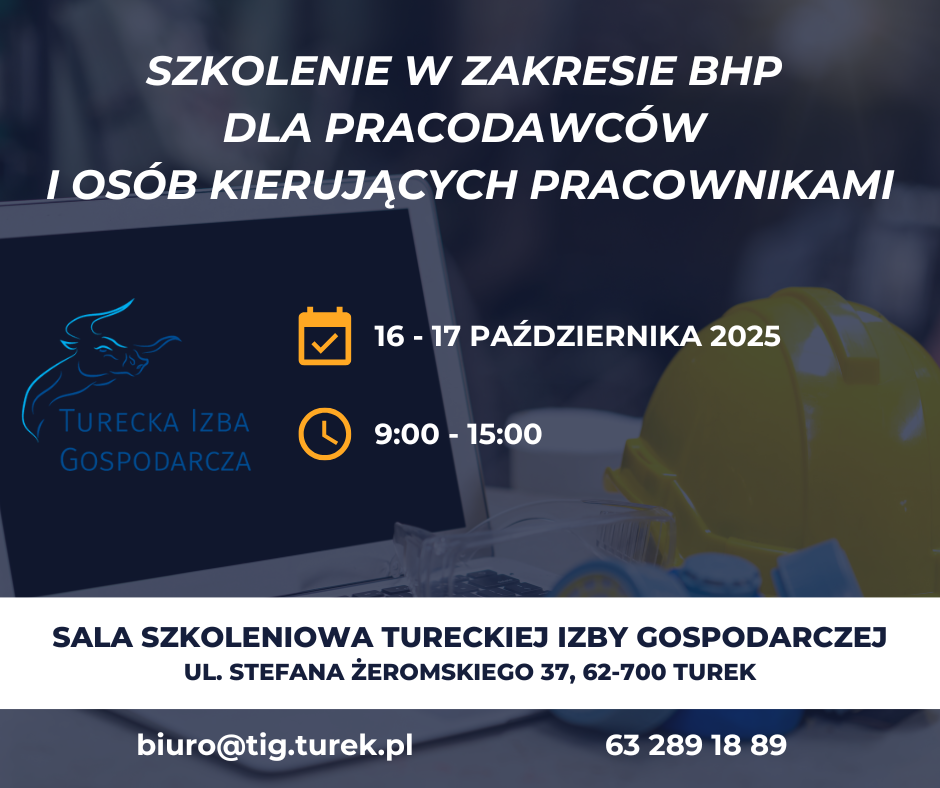 Serdecznie zapraszamy do udziału w szkoleniu BHP organizowanym przez Turecką Izbę Gospodarczą. Szkolenie odbędzie się w formie samokształcenia kierowanego oraz spotkania stacjonarnego.